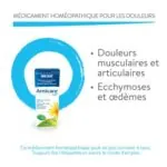 Médicament homéopathique qui soulage les douleurs musculaires et articulaires. Facilite la résorption des ecchymoses, contusions et œdèmes inflammatoires causés par un traumatisme (chute, coup, intervention chirurgicale).